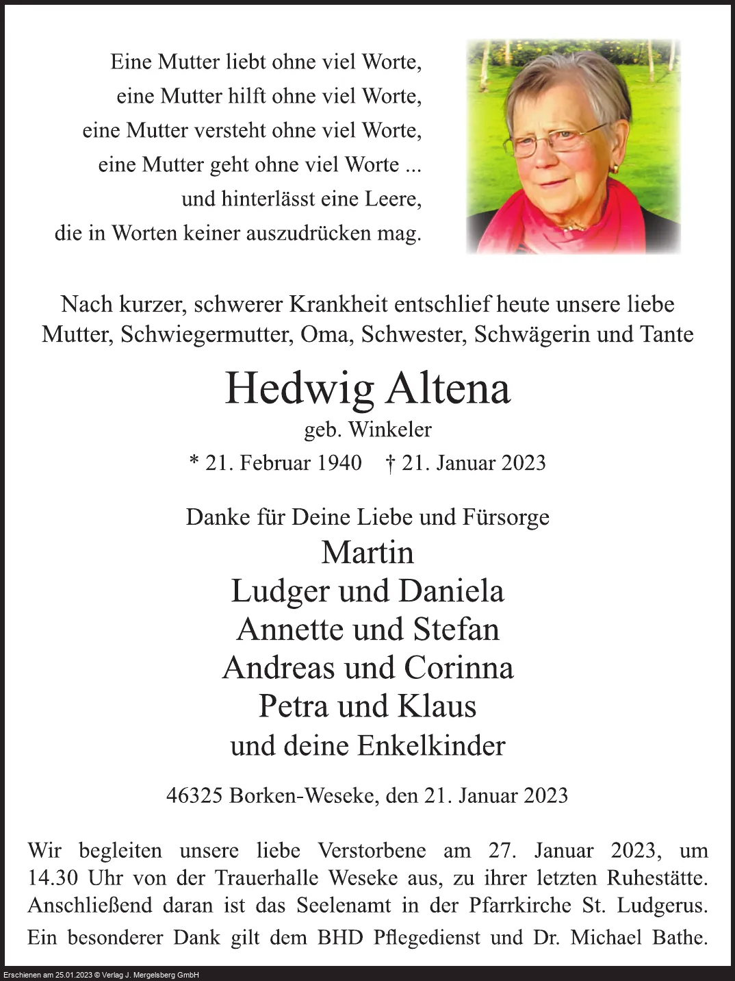 Hedwig Altena (Geb. Winkeler)