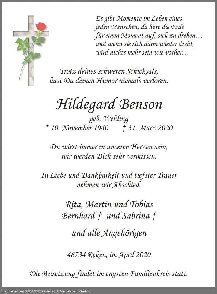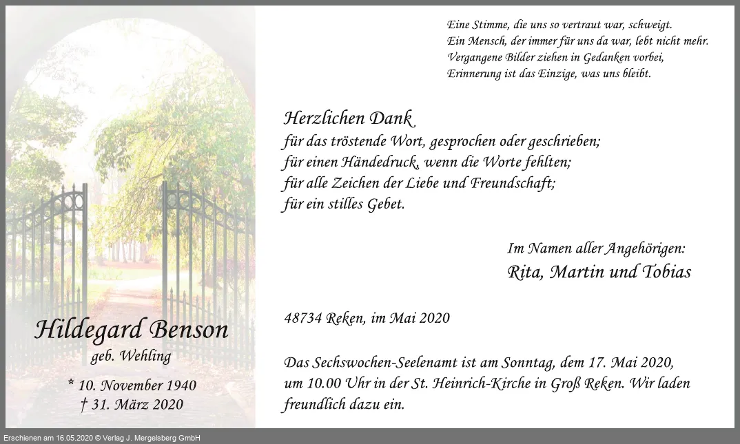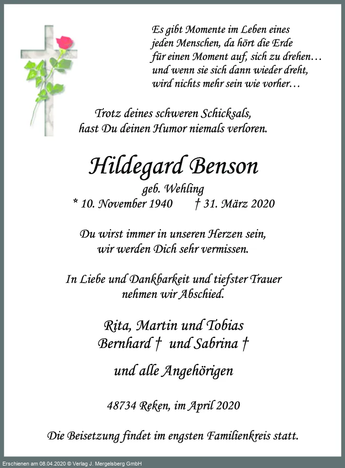 Hildegard Benson (Geb. Wehling)