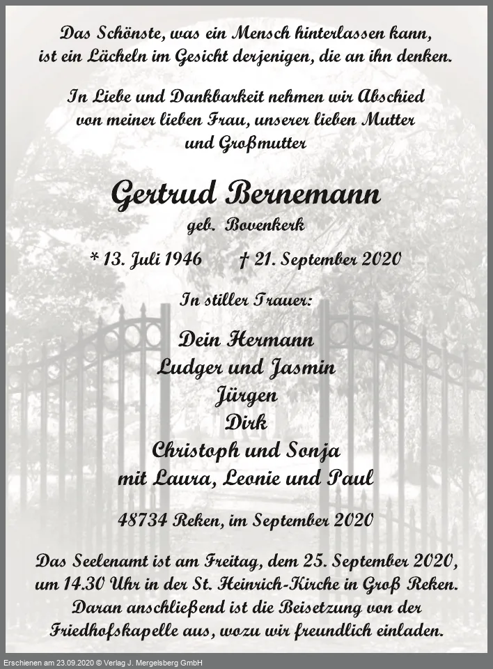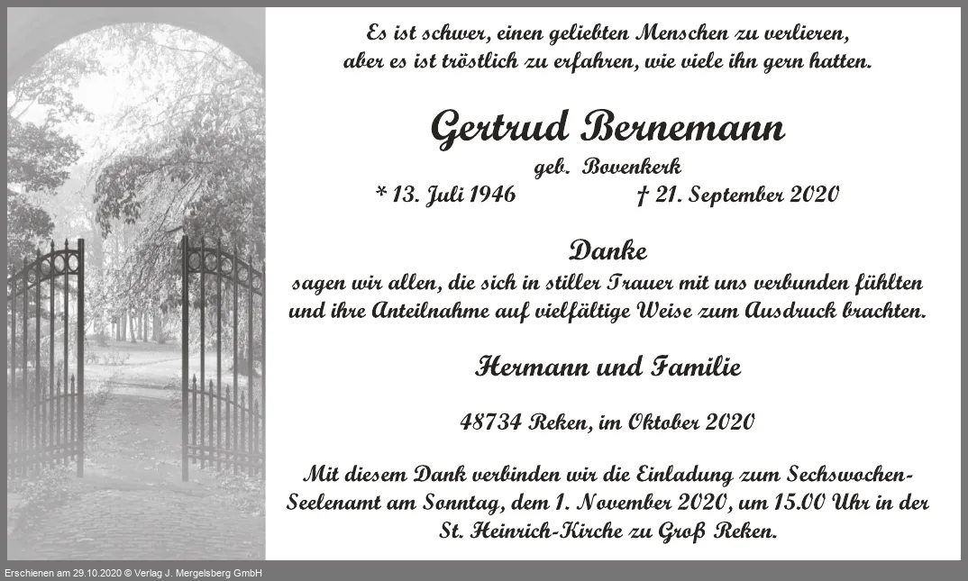 Gertrud Bernemann (Geb. Bovenkerk)