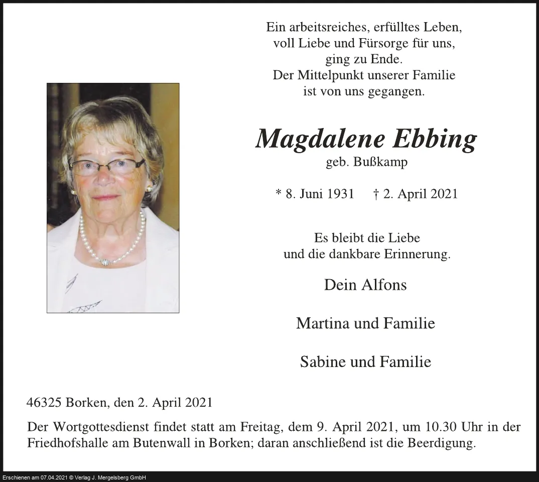 Magdalene Ebbing (Geb. Bußkamp)