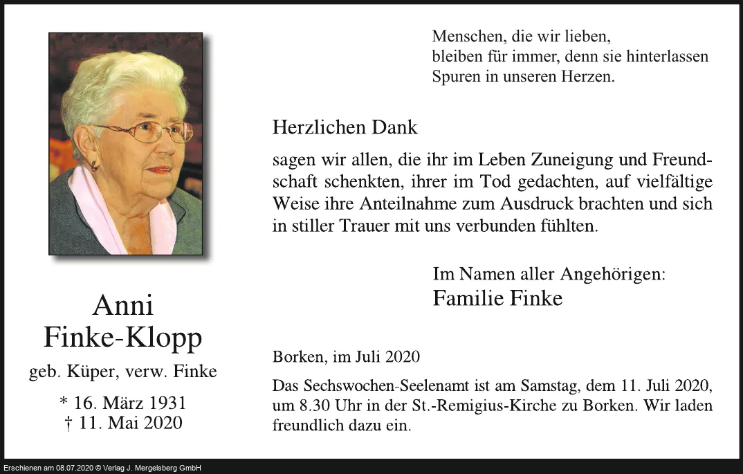 Anni Finke-Klopp (Geb. Küper verw. Finke)