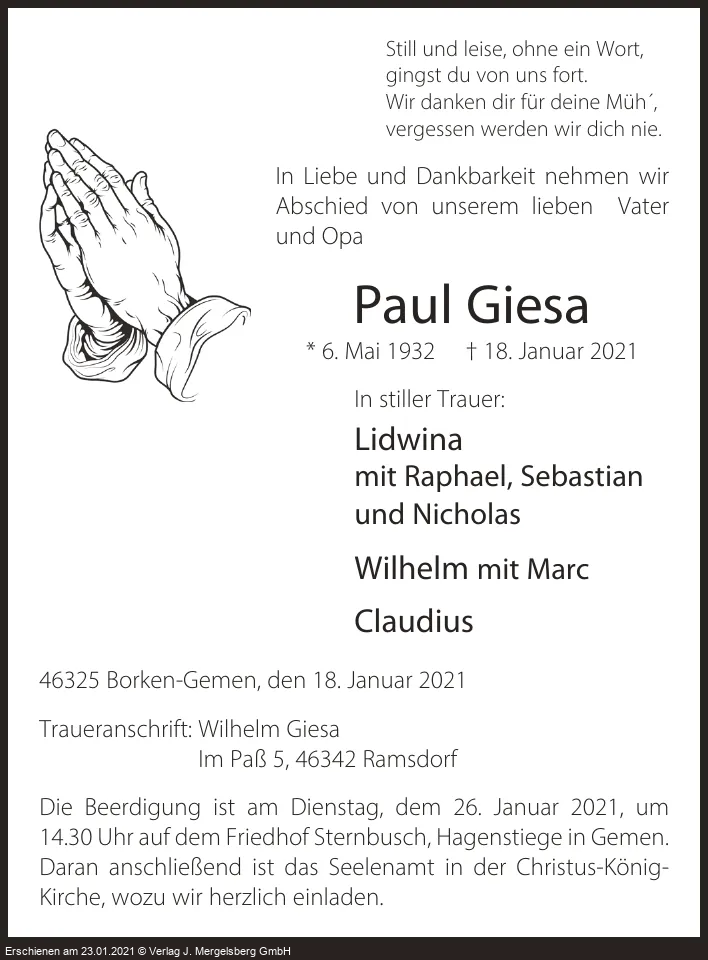 Bis jetzt wurden keine Kondolenzen verfasst.