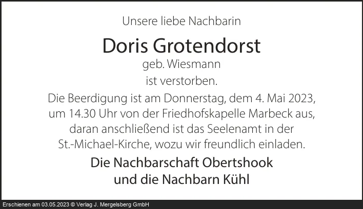 Doris Grotendorst (Geb. Wiesmann)