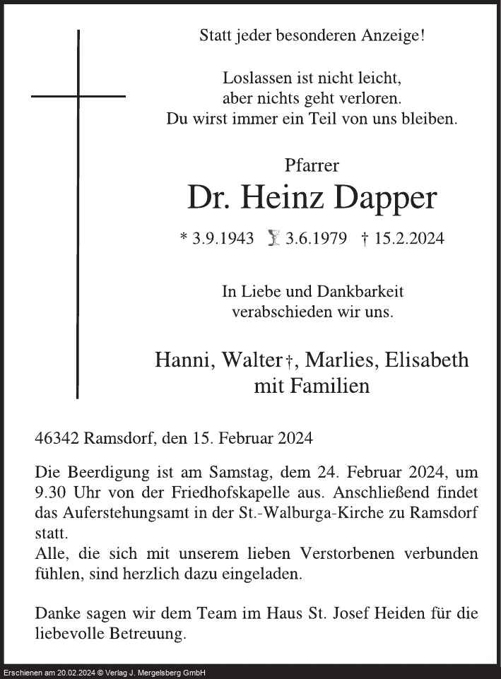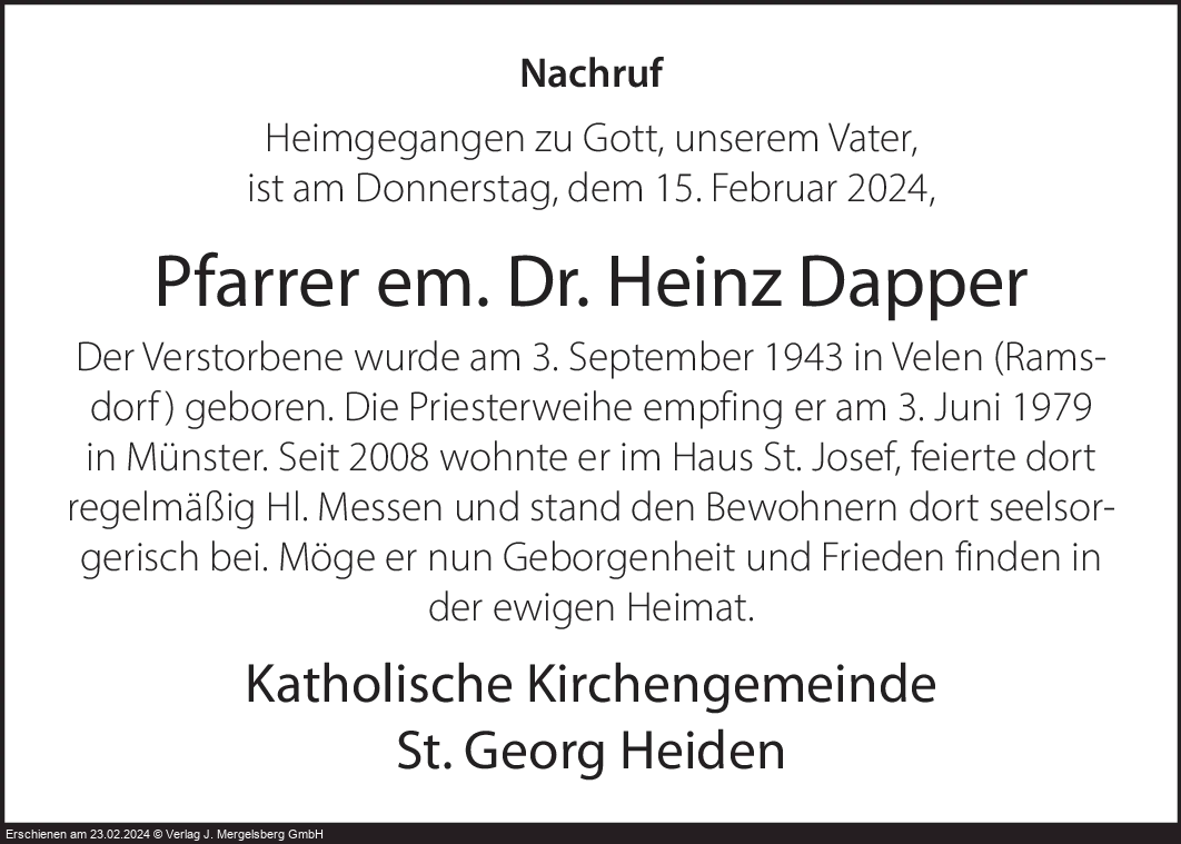 Pfarrer em. Dr. Heinz (Geb. Dapper)