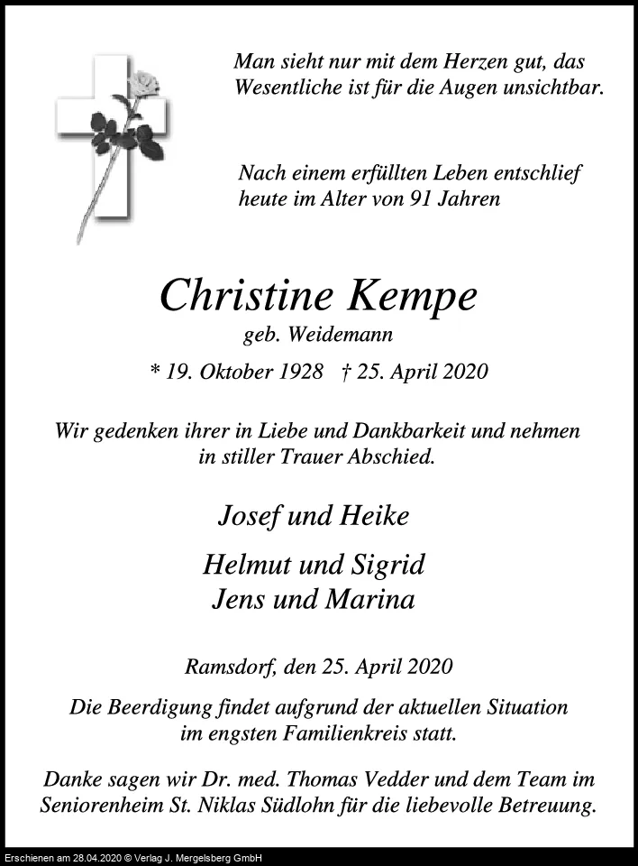 Christine Kempe (Geb. Weidemann)