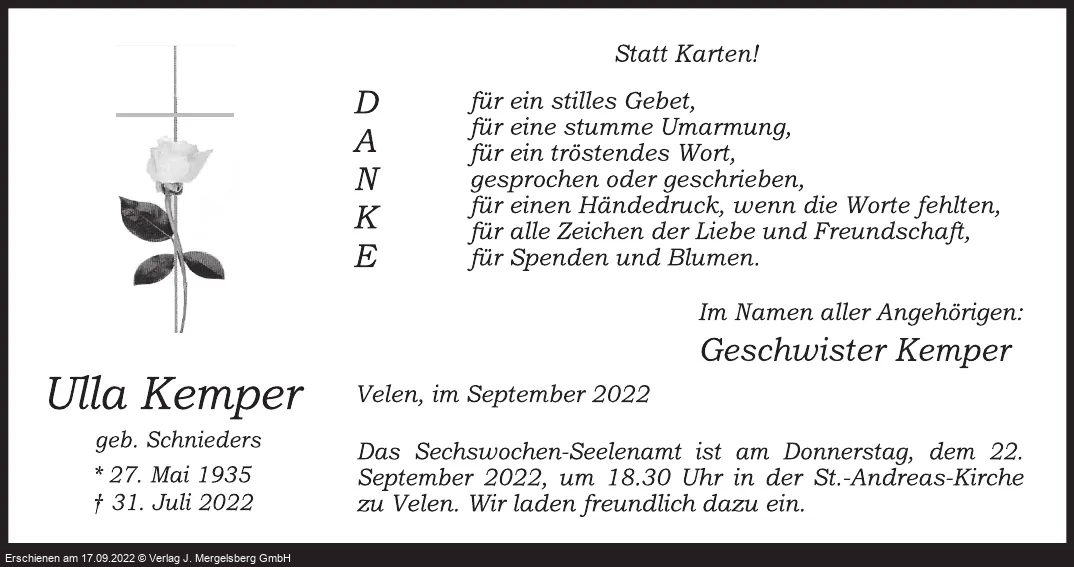 Ulla Kemper (Geb. SChnieders)