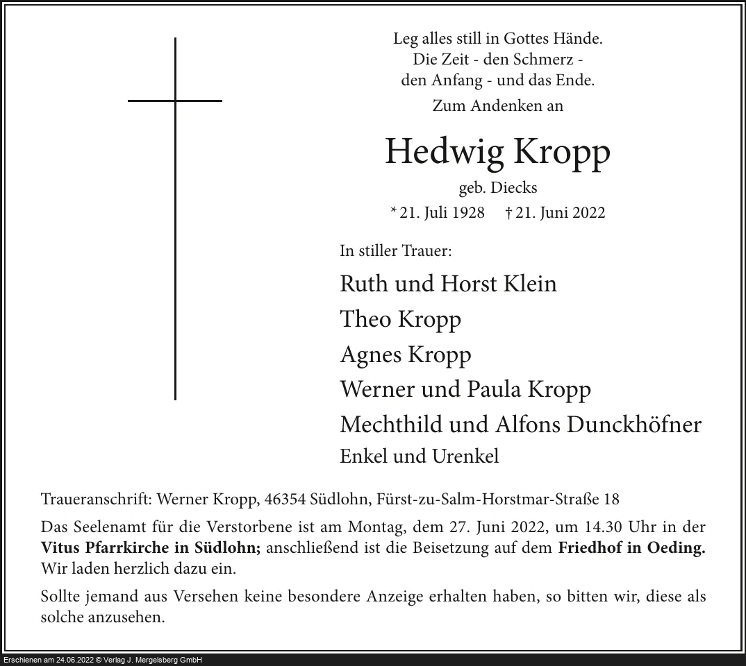 Hedwig Kropp (Geb. Diecks)