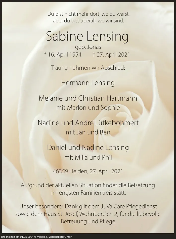Sabine Lensing (Geb. Jonas)