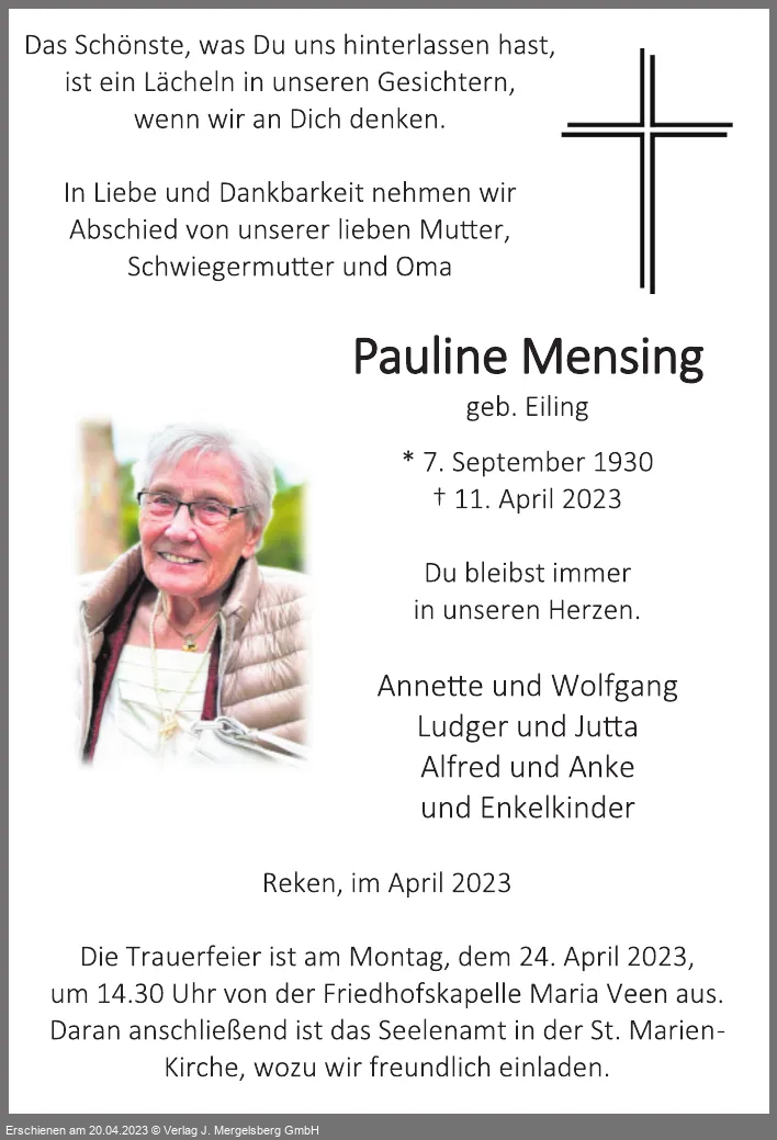 Pauline Mensing (Geb. Eiling)