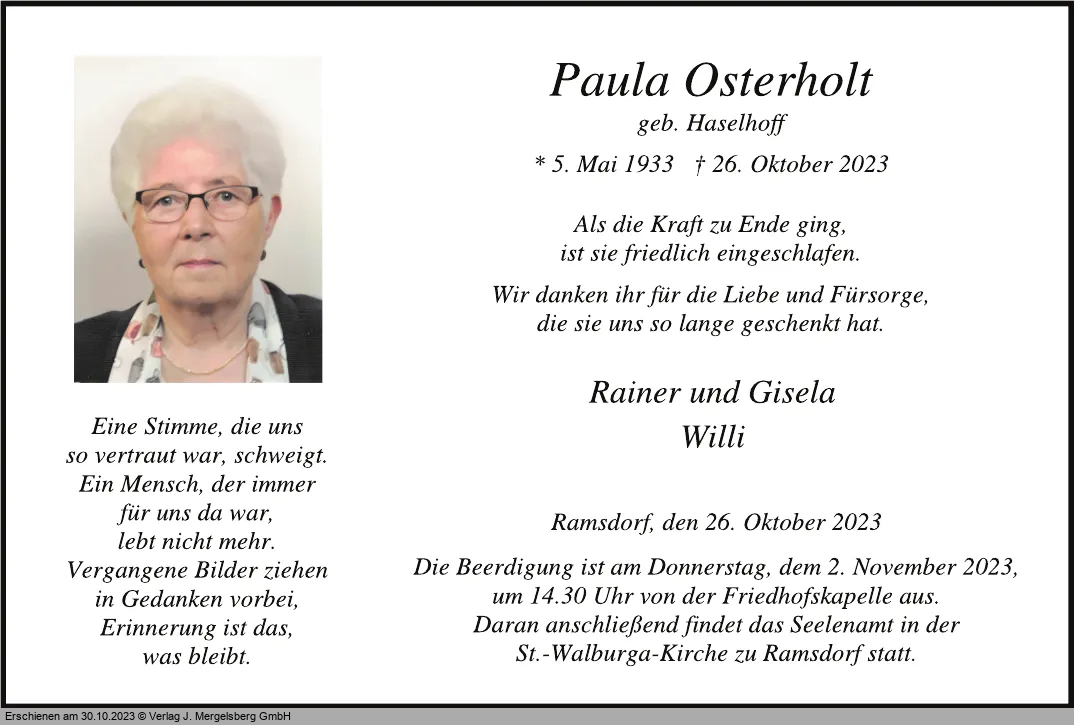 Paula Osterholt (Geb. Haselhoff)