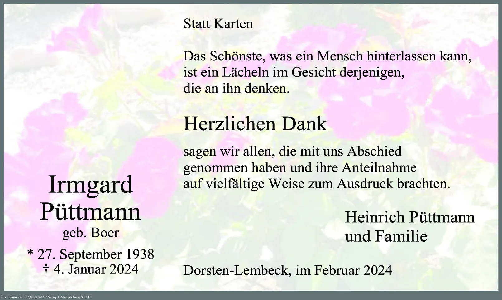 Imgard Püttmann (Geb. Boer)