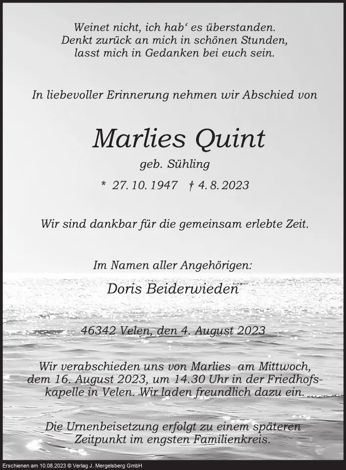 Marlies Quint (Geb. Sühling)
