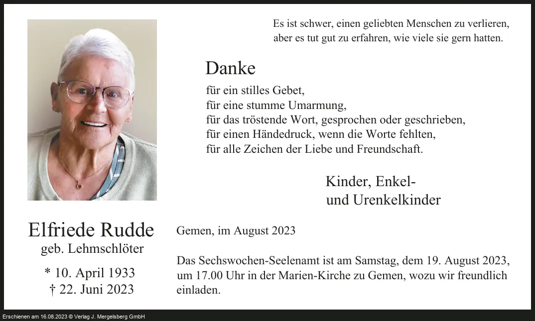 Elfriede Rudde (Geb. Lehmschlöter)
