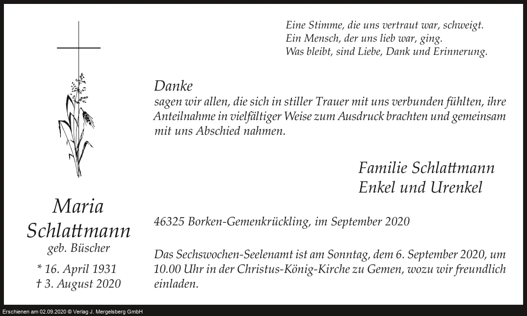 Maria Schlattmann (Geb. Büscher)