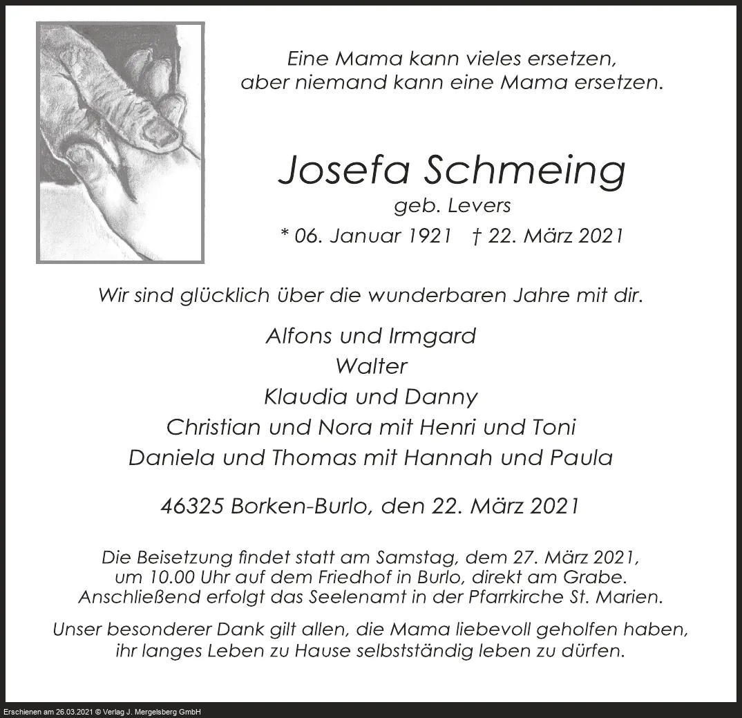 Josefa Schmeing (Geb. Levers)