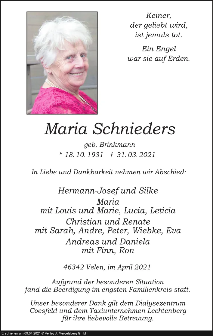 Maria Schnieders (Geb. Brinkmann)