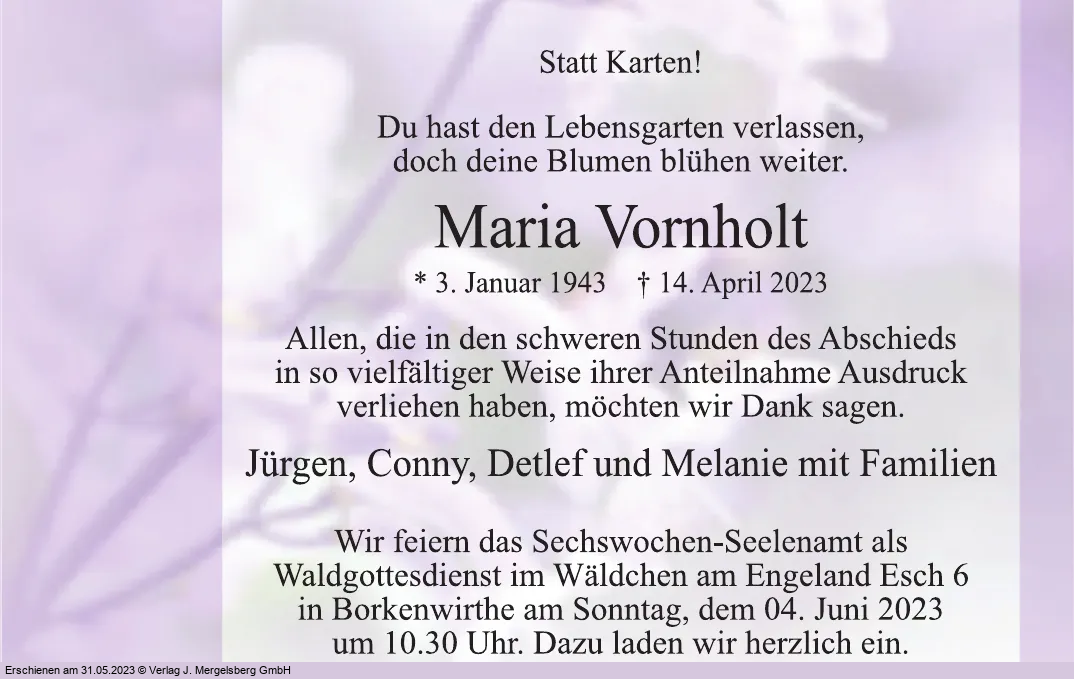 Maria Vornholt (Geb. Olbing)