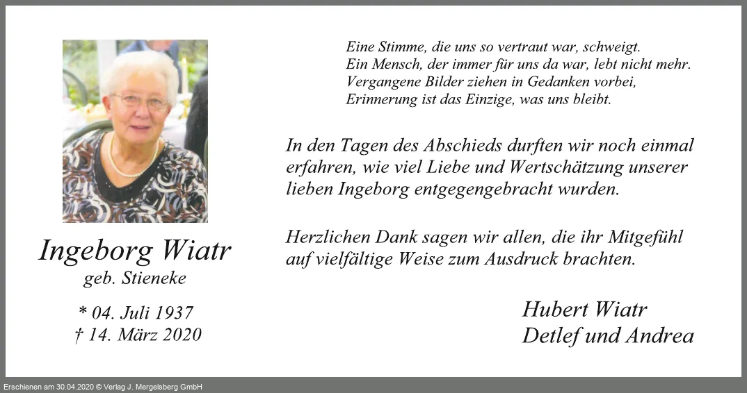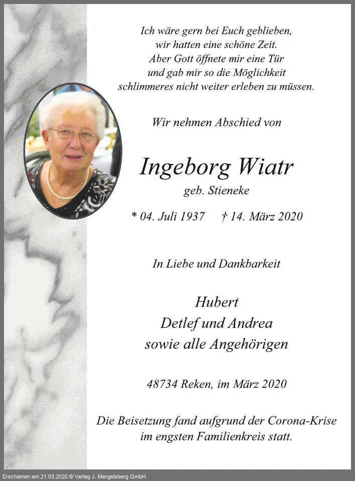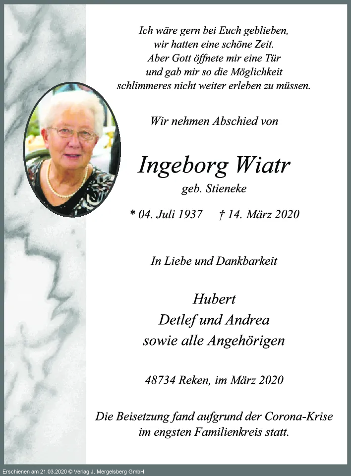 Ingeborg Wiatr (Geb. Stieneke)