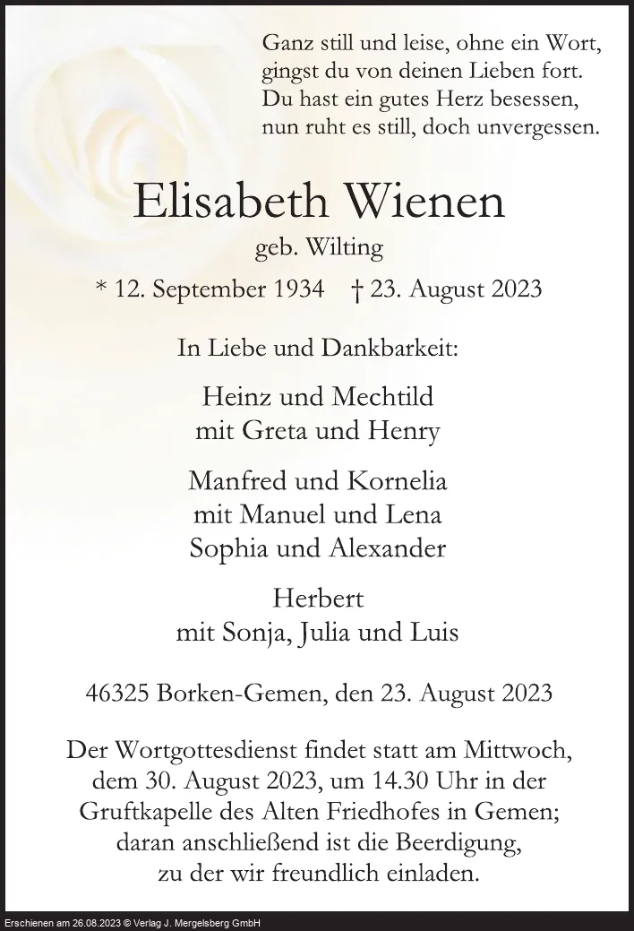 Elisabeth Wienen (Geb. Wilting)