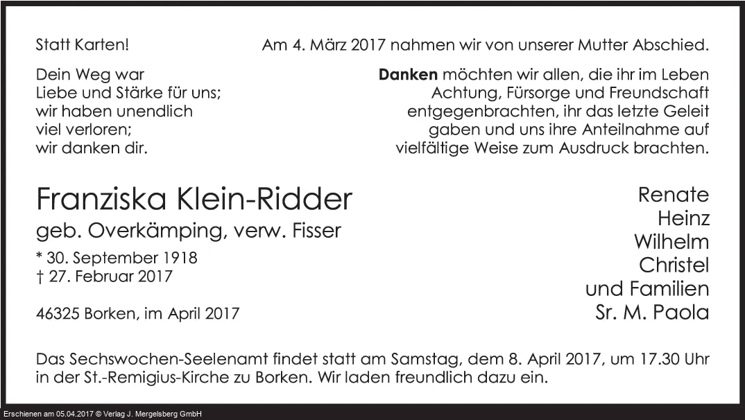 Neuste Traueranzeigen