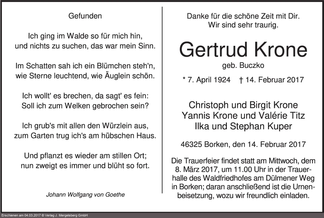 Neuste Traueranzeigen
