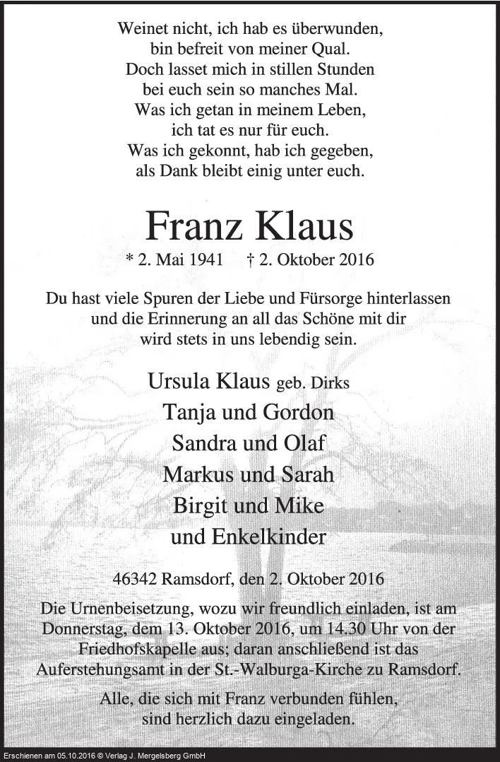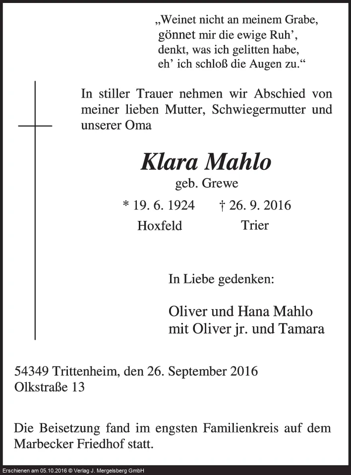 Neuste Traueranzeigen