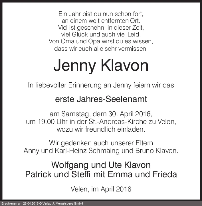| † | 25. | 04. | 2016 |