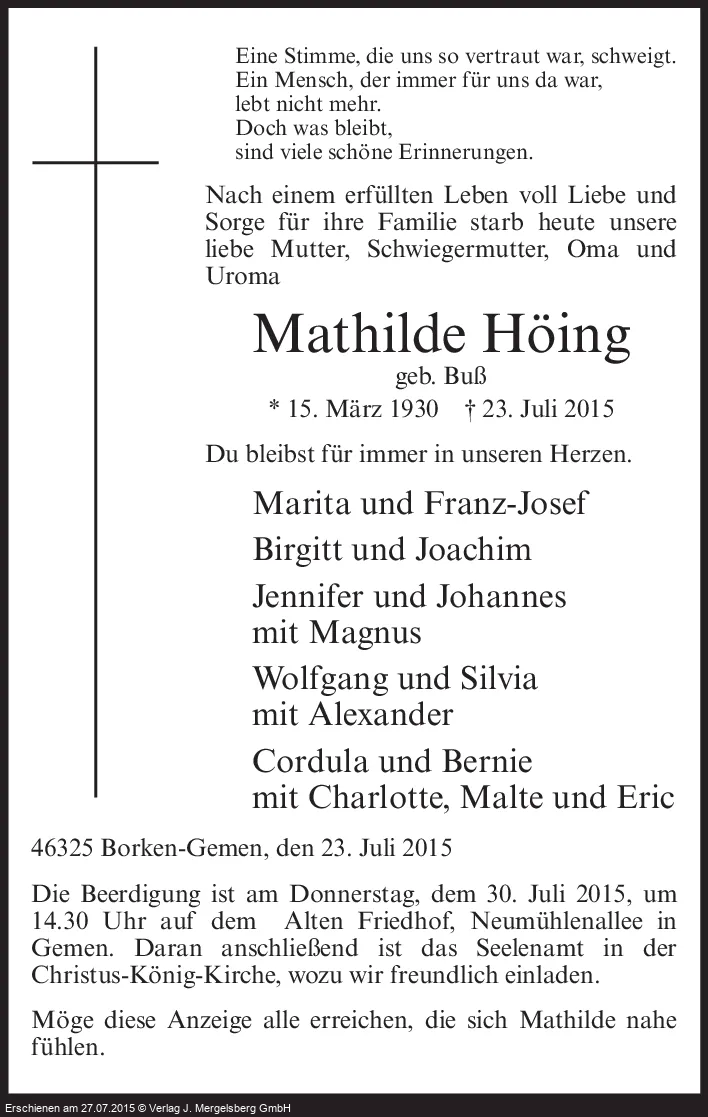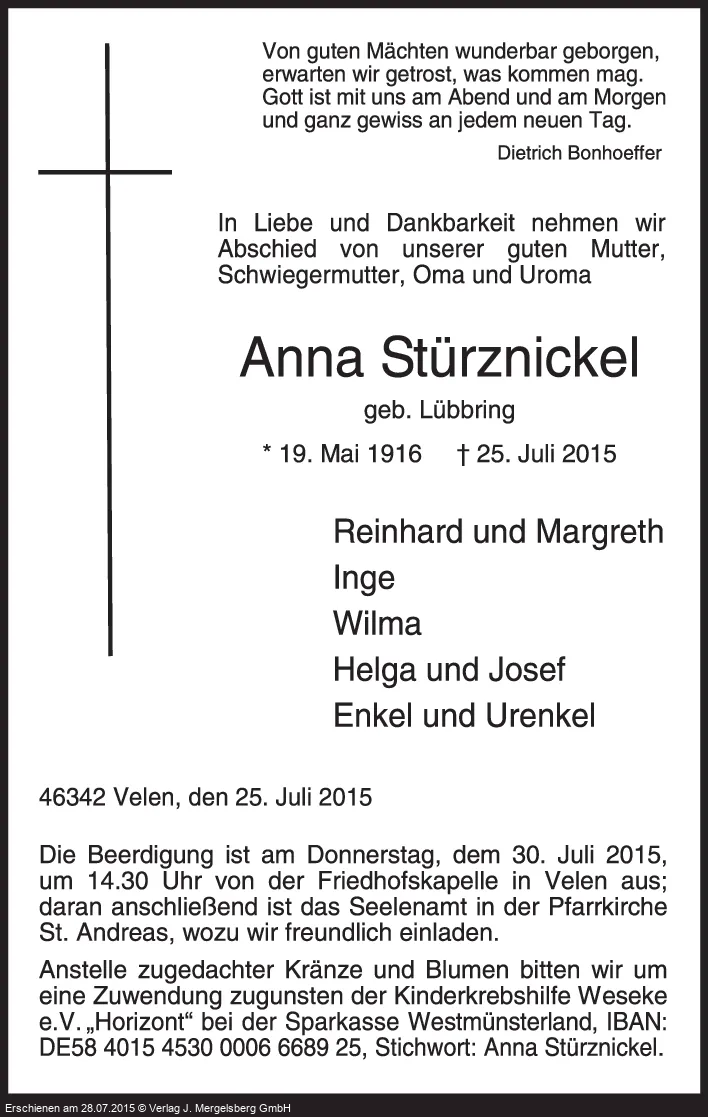 Neuste Traueranzeigen