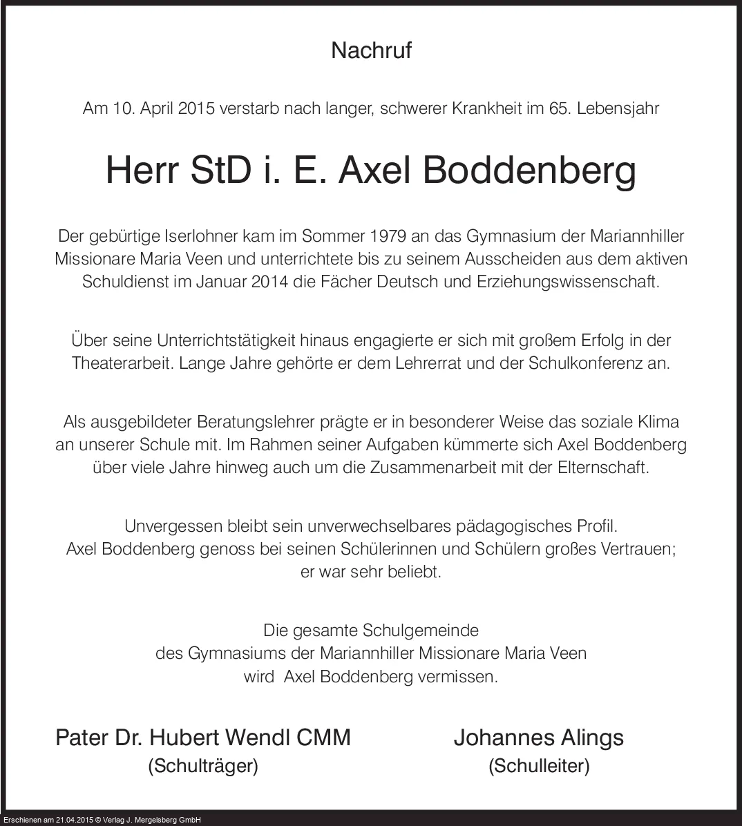 | † | 18. | 04. | 2015 |