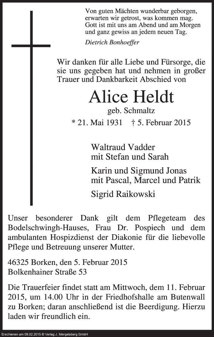 Neuste Traueranzeigen