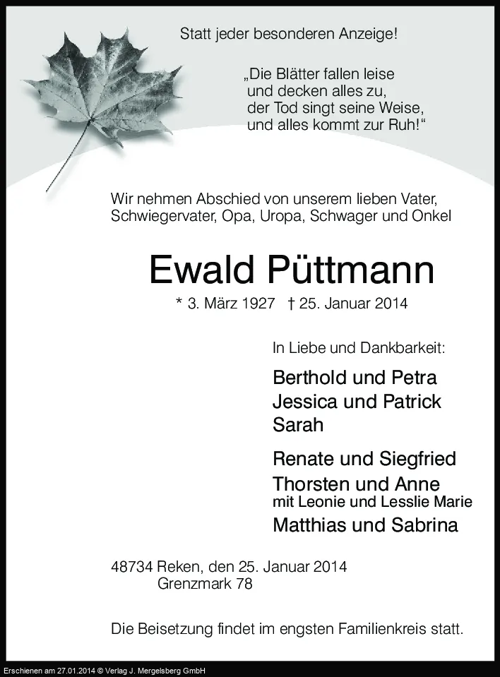 Neuste Traueranzeigen