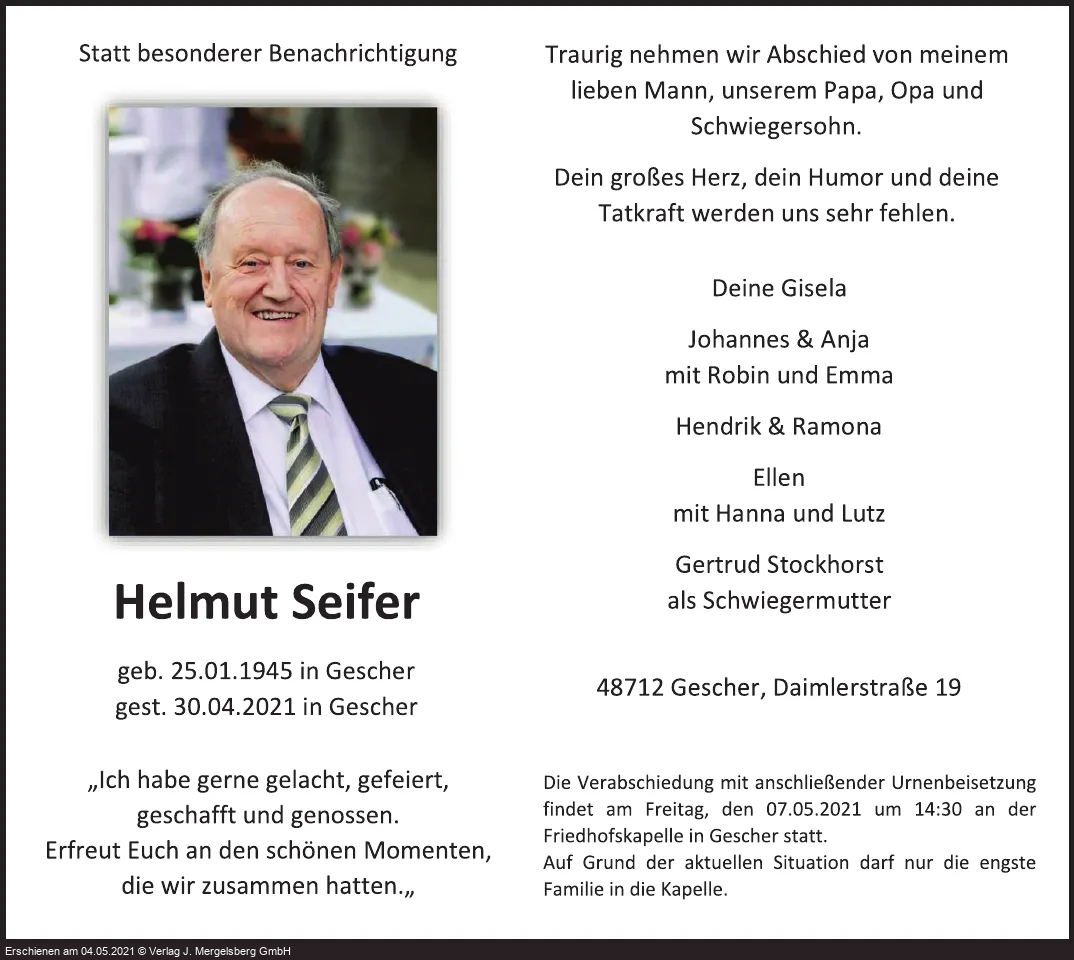 | † | 30. | 04. | 2021 |