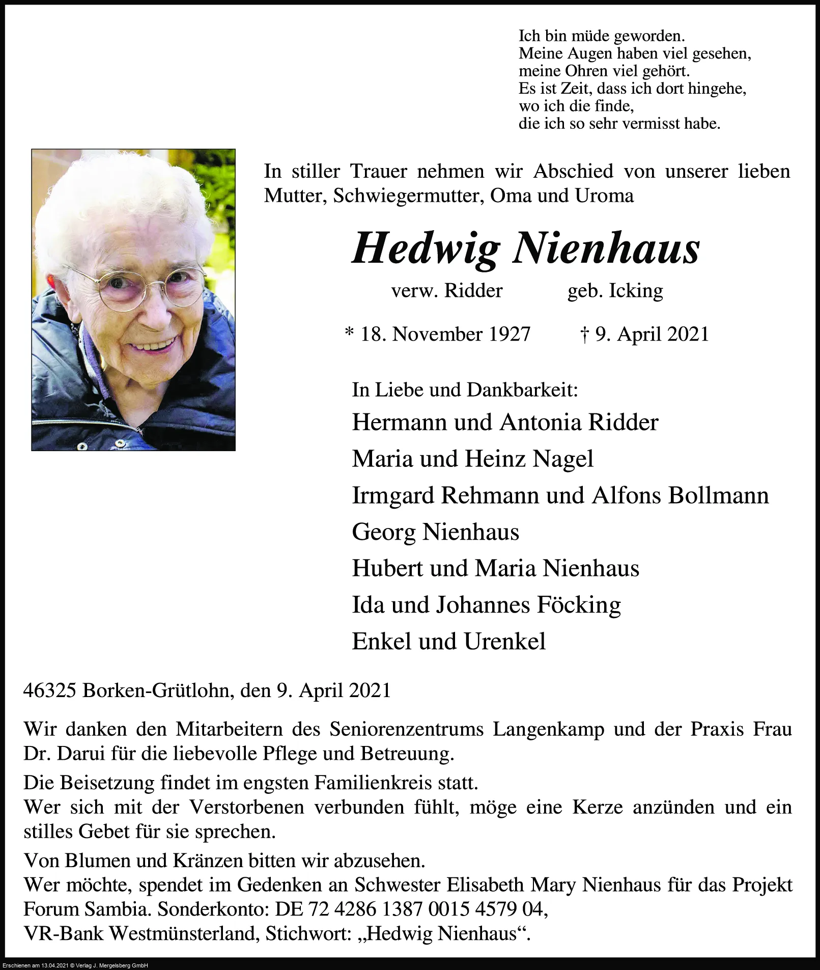 | † | 12. | 04. | 2021 |